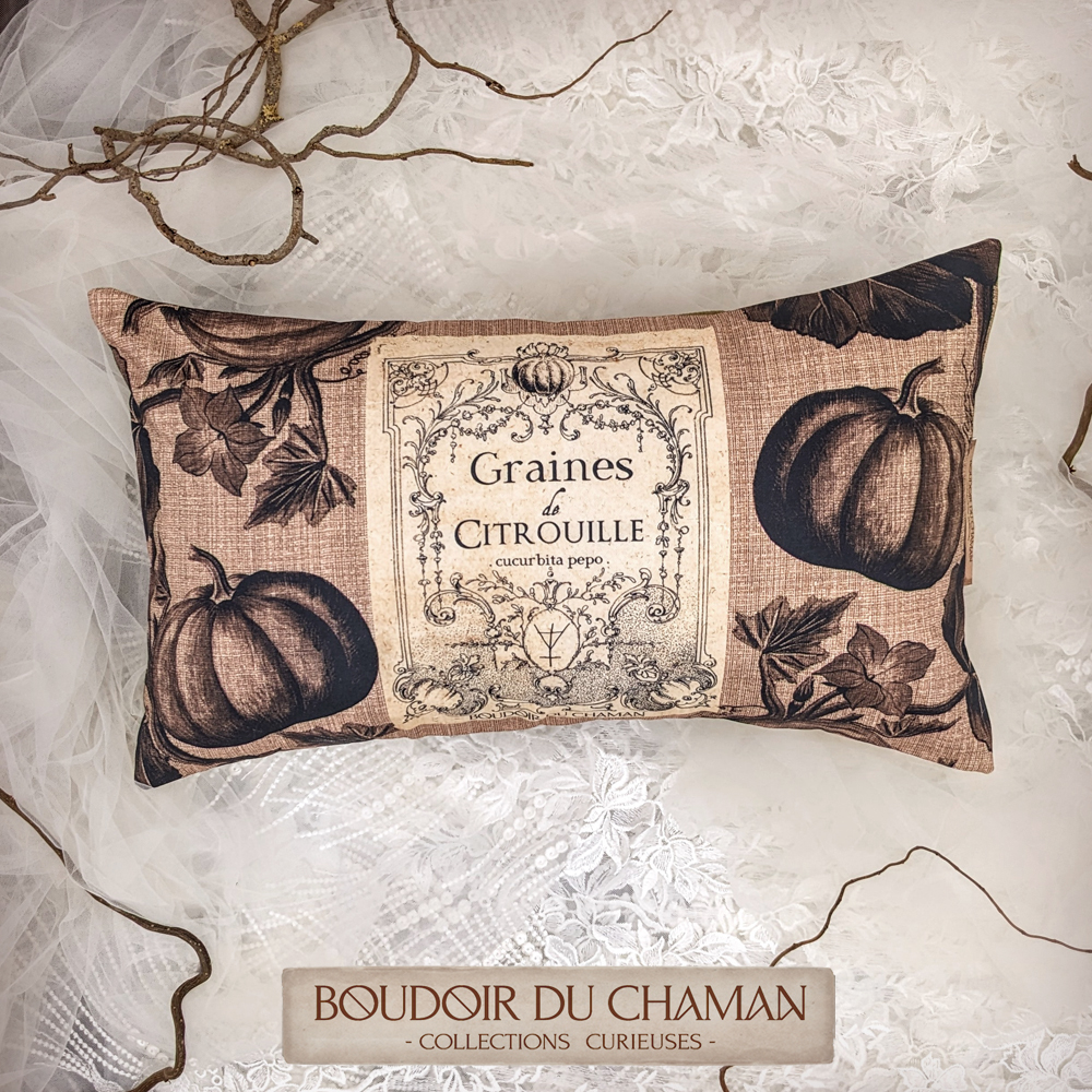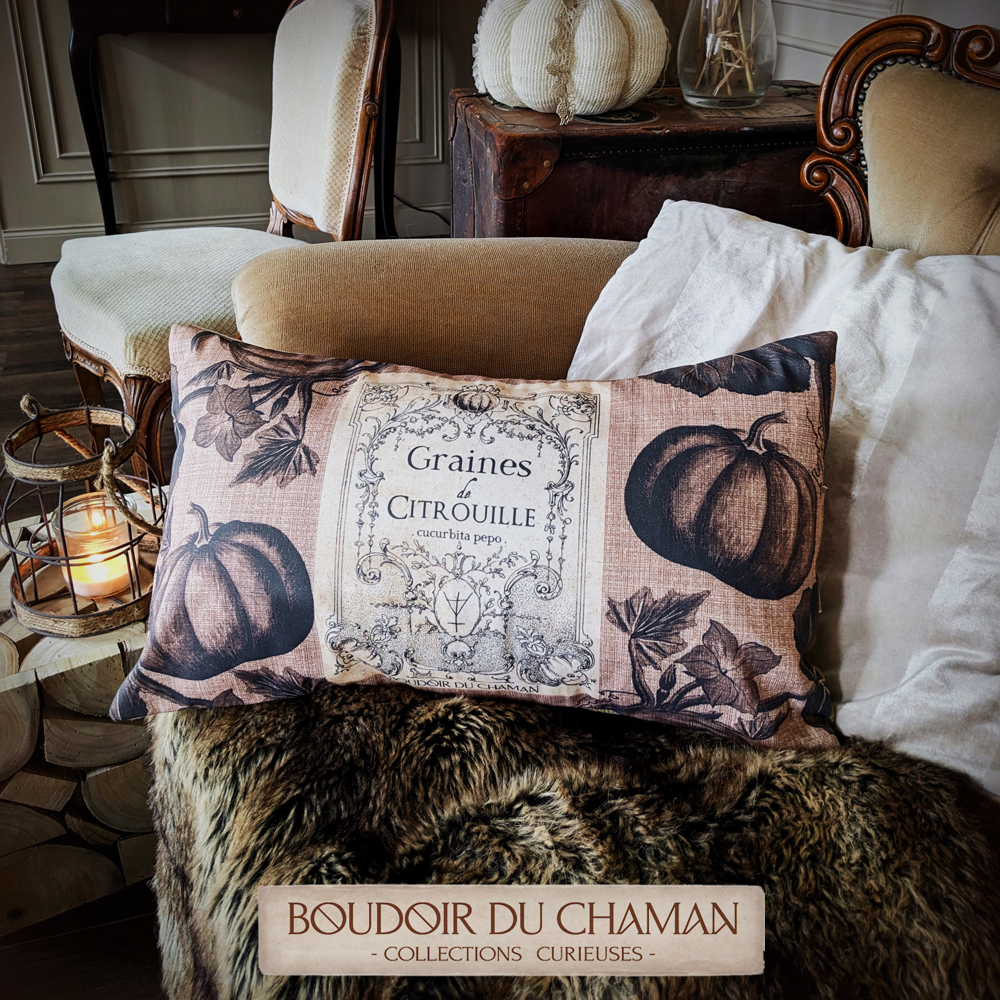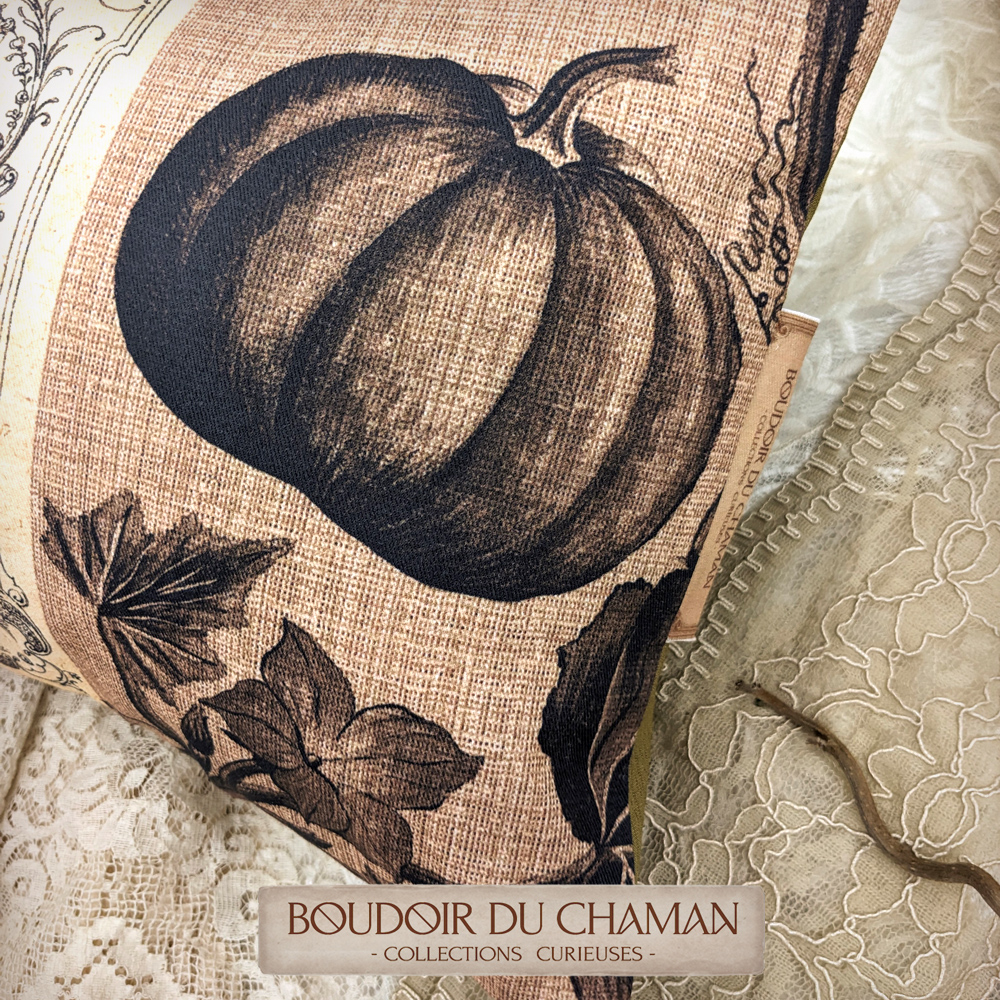 Une ode à l’automne et à ses récoltes de citrouilles! ce coussin est une composition originale du Boudoir. Le dos est brodé de dentelle. Lavage à la main ou à 30° en cycle court. Ne pas passer au sèche linge.