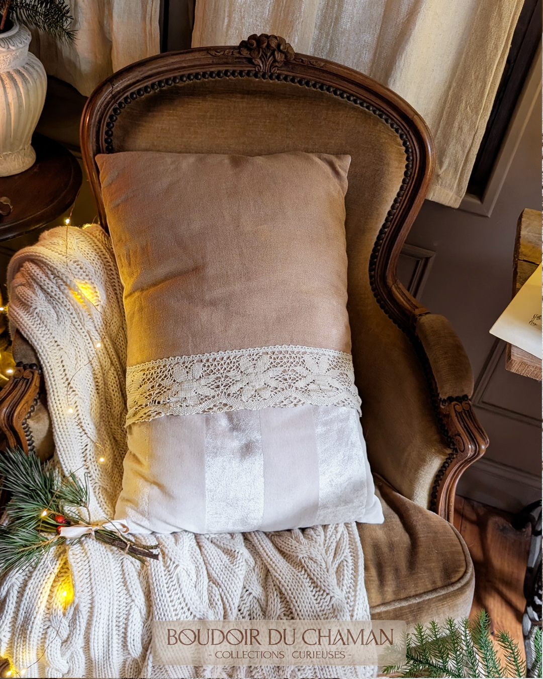 dimensions:60X40cm (livré SANS le coussin de garniture) face en polyester imprimé en France avec des encres écologiques . cousue par mes soins dans le Boudoir <3