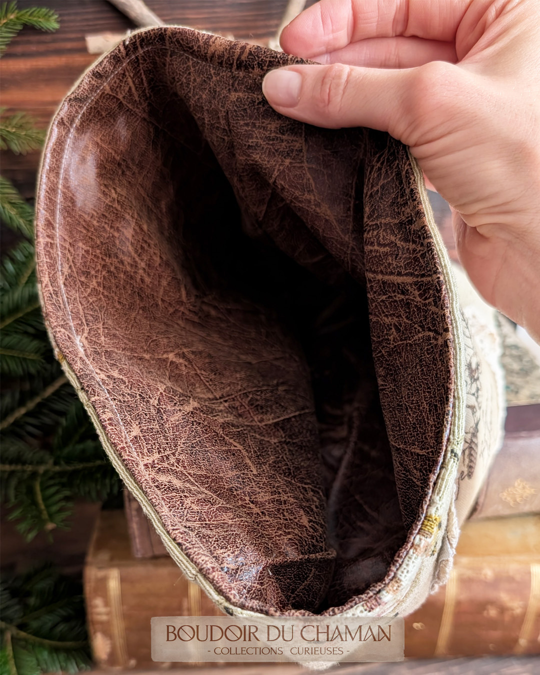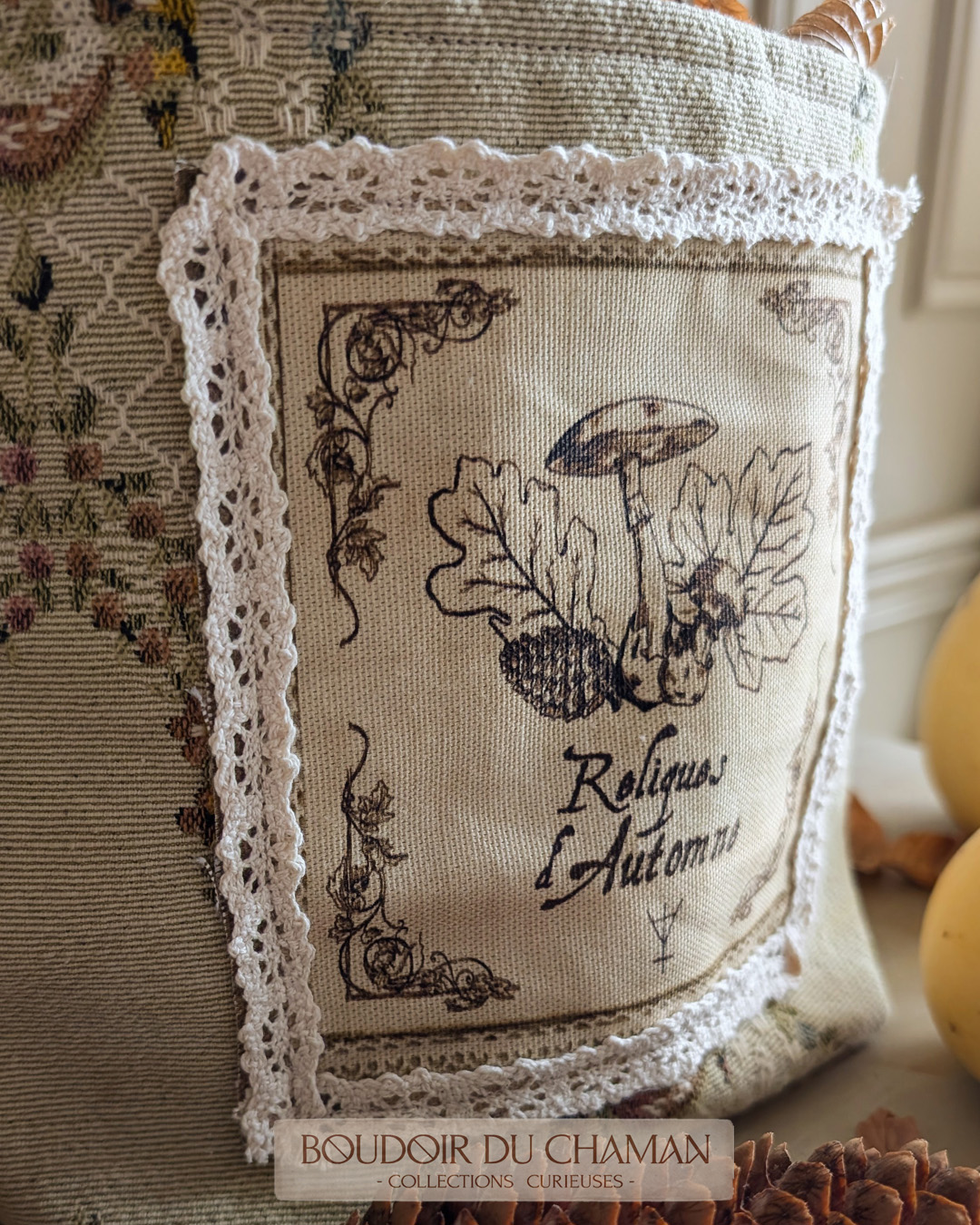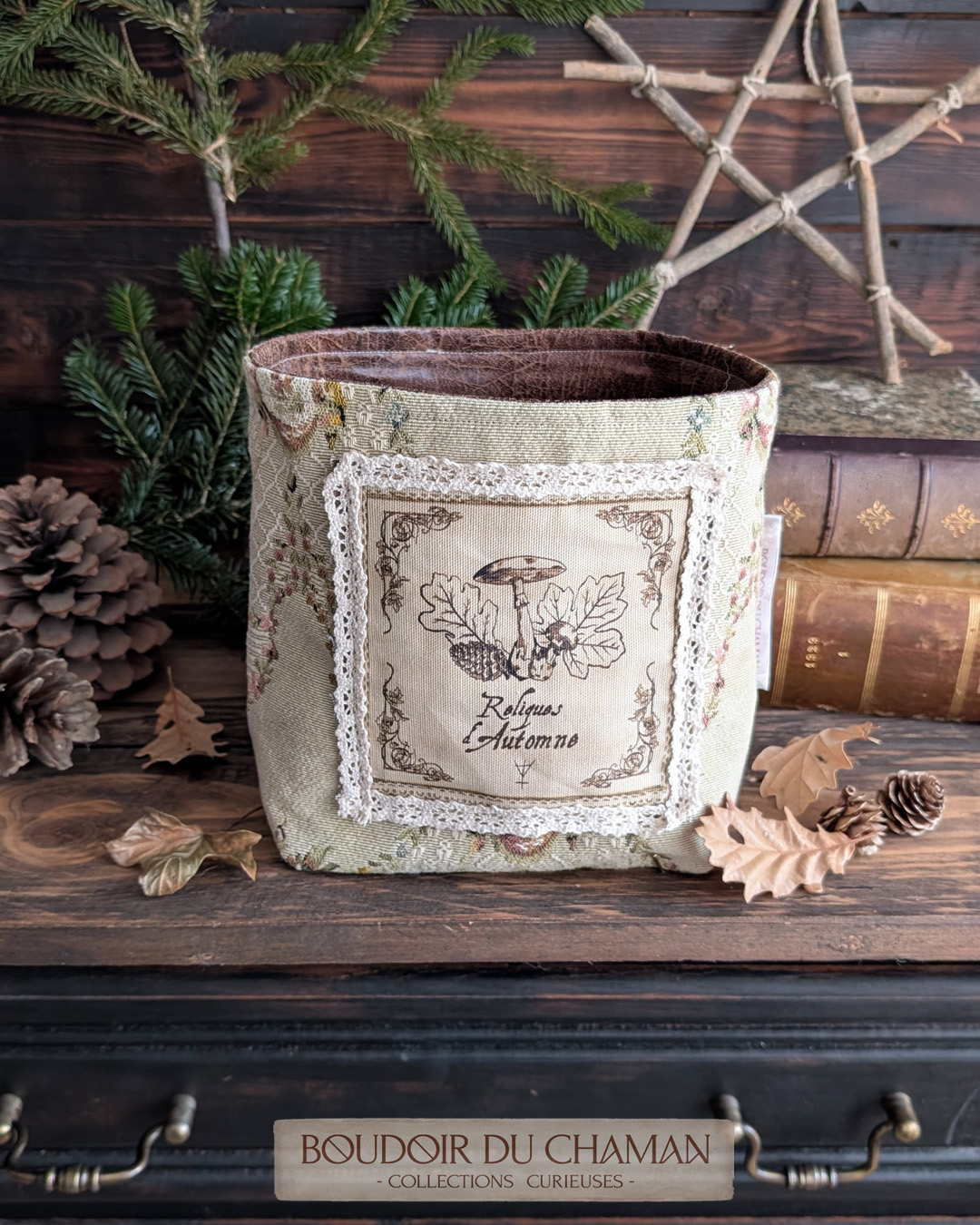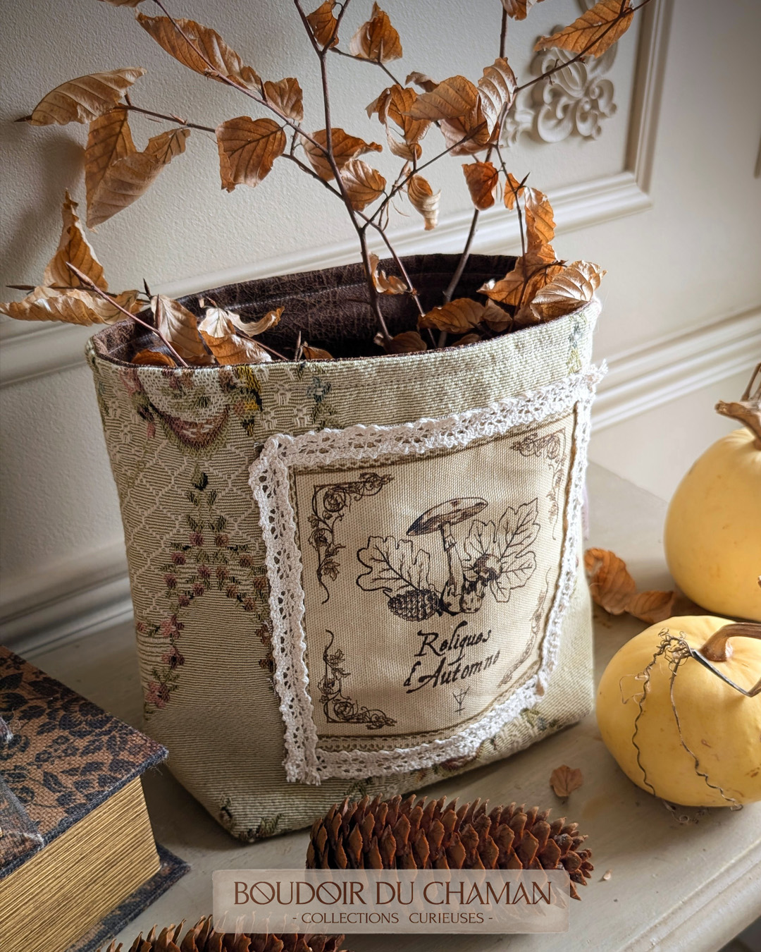 Pour organiser votre foyer avec une touche de magie… ce petit panier a été entièrement confectionné avec amour dans le Boudoir. Il peut contenir vos objets magiques, vos produits de beauté, vos tisanes et accessoires de cuisine, votre matériel de bureau ou même servir de cache-pot à votre mandragore!