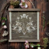 Cette housse de coussin à l’esprit botanique est imprimée d’un de mes dessins réalisé durant l’hiver. Elle met en scène une espèce hybride entre mandragore et perce-neige, la fleur symbolisant la fête celtique d’Imbolc.