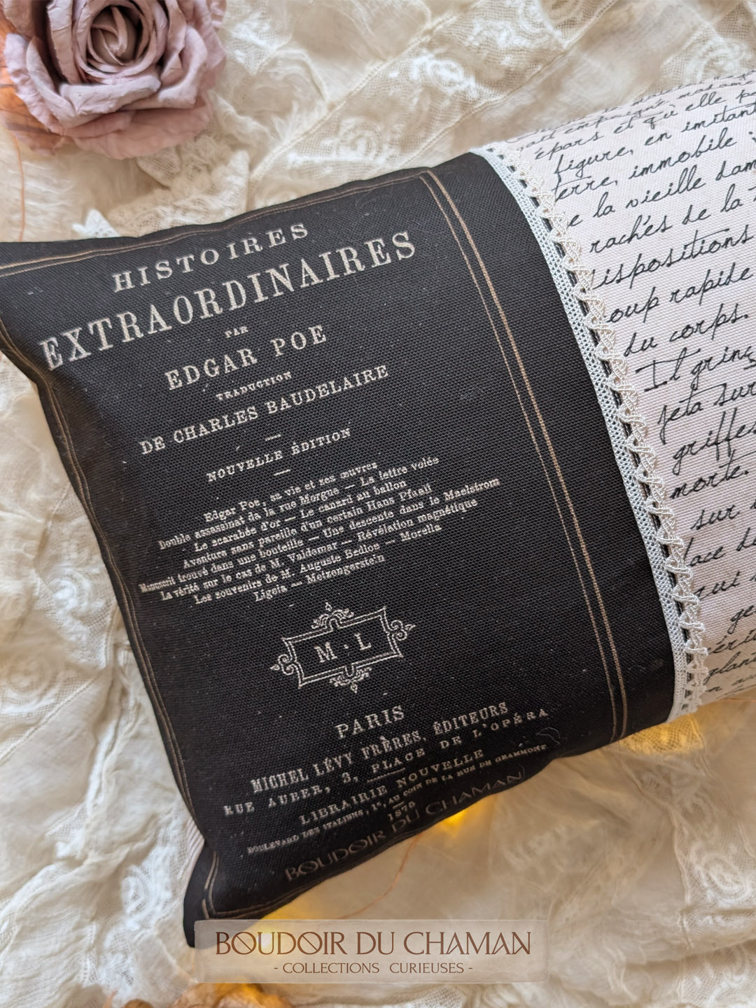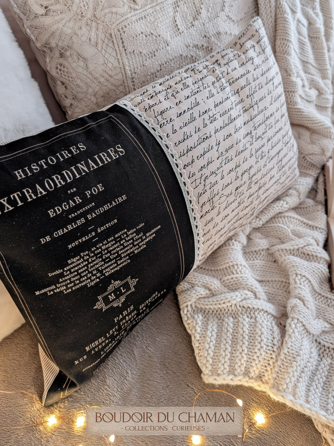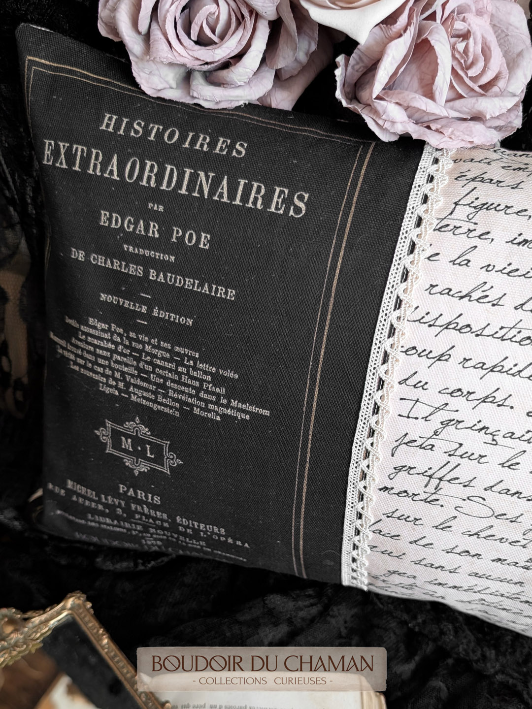 Les créations textiles de la collection Baudelaire mettent en scène des vers du poète romantique associées aux couvertures de ses oeuvres éditées au XIXème .