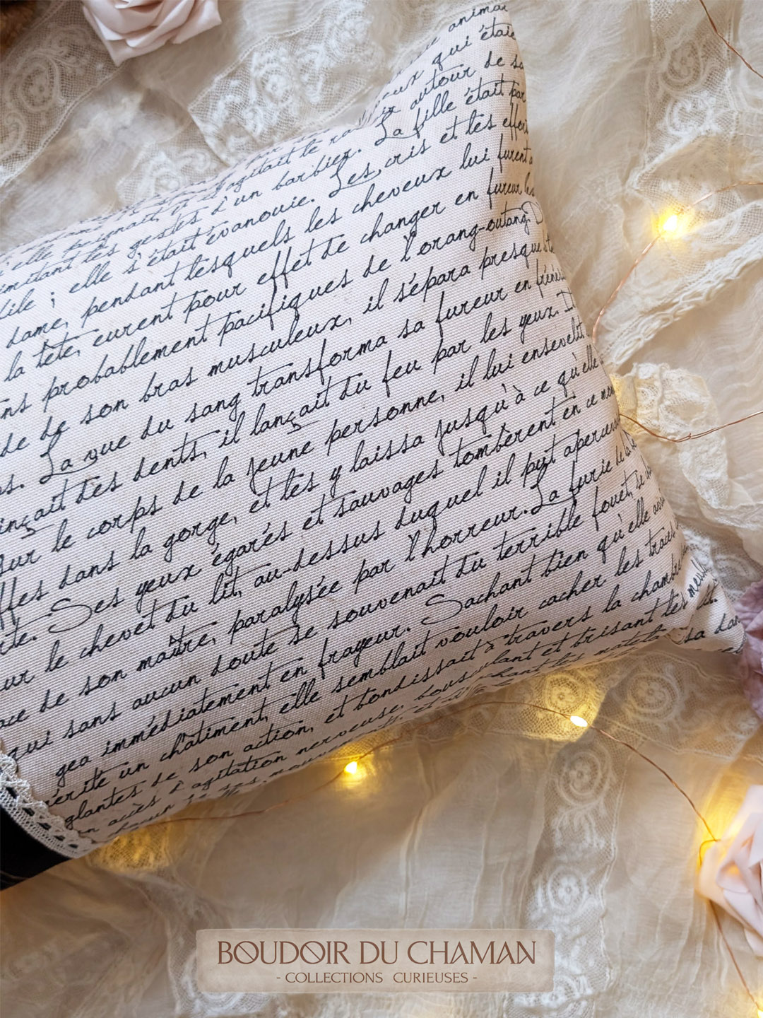 Imprimé en France avec des encres textiles écologiques sur du coton bio. dos en tissus et dentelle chinés.